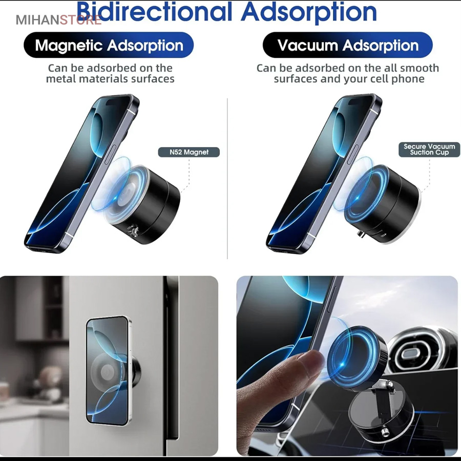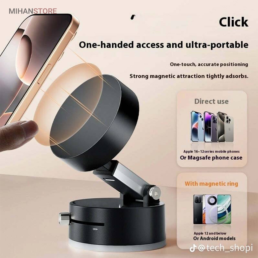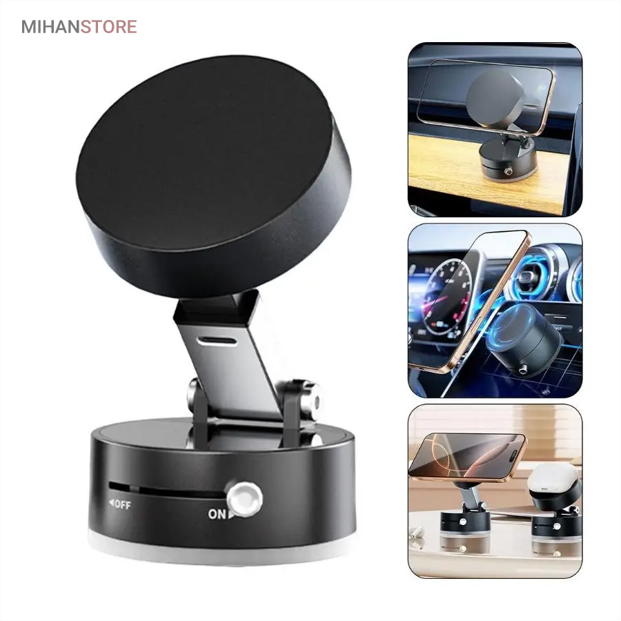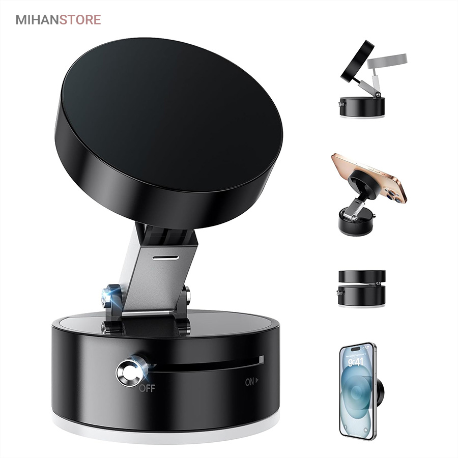اگر به دنبال یک هولدر مگنتی موبایل هستید که در عین طراحی ساده و شیک، وکیوم بسیار قوی و پایداری عالی داشته باشد، هولدر مغناطیسی موستانگ انتخابی فوق‌العاده برای شماست. این هولدر با بهره‌گیری از تکنولوژی وکیوم و آهنربای قدرتمند، موبایل شما را حتی در مسیرهای پر دست‌انداز ثابت نگه می‌دارد. با قابلیت تنظیم درجه، راهکاری ایده‌آل برای ثبات و امنیت گوشی شما در حین رانندگی است. نصب آسان، چسبندگی قوی و امکان تنظیم زاویه دلخواه، این هولدر را به انتخابی بی‌نظیر برای تجربه‌ای راحت و ایمن تبدیل می‌کند. این هولدر با ترکیب تکنولوژی مکش خلاء و جاذبه مغناطیسی، راه حلی ایده آل برای استفاده چندمنظوره روی سطوح مختلف ارائه میدهد. طراحی زیبا، عملکرد پایدار و نصب آسان، آن را به انتخابی محبوب برای کاربرانی که به کیفیت و کارایی اهمیت میدهند، تبدیل کرده است.  این محصول با تمامی مدلهای گوشیهای هوشمند اندروید و آیفون سازگار است. طراحی جمع‌شونده و تاشو این پایه، آن را برای استفاده در خانه، خودرو، آینه، شیشه، کاشی، میز کار، آشپزخانه و حتی تجهیزات ورزشی به گزینه‌ای بی‌رقیب تبدیل کرده است. کافی‌ست آن را به سطحی صاف بچسبانید و از آزادی عمل کامل در زاویه دید لذت ببرید.