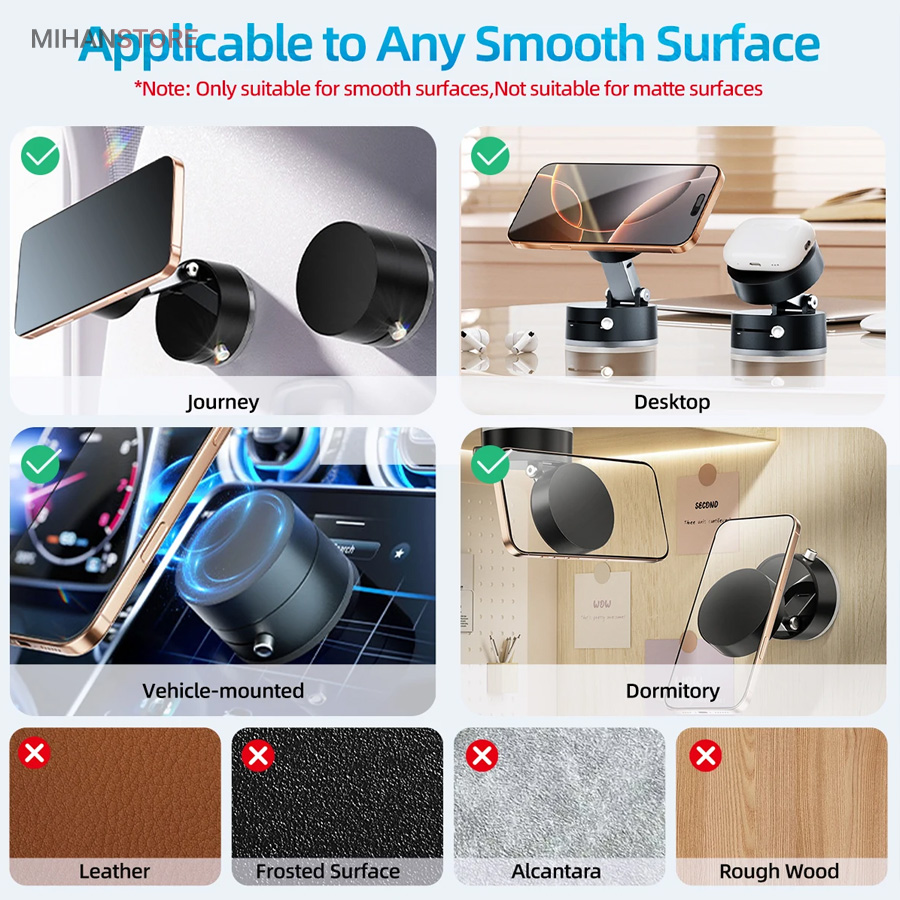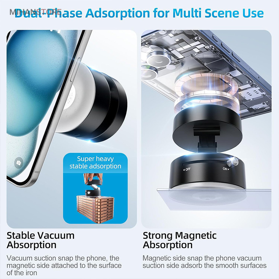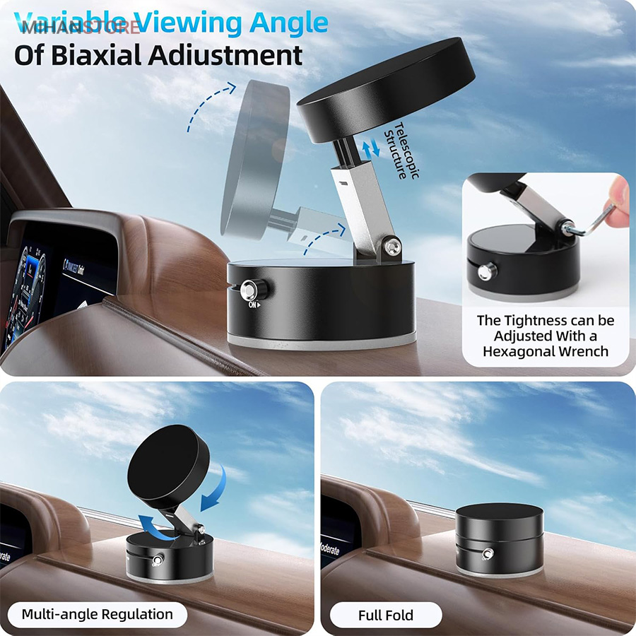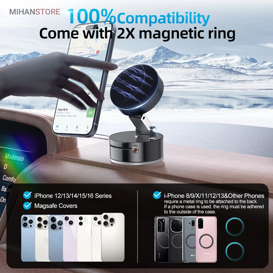 اگر به دنبال یک هولدر مگنتی موبایل هستید که در عین طراحی ساده و شیک، وکیوم بسیار قوی و پایداری عالی داشته باشد، هولدر مغناطیسی موستانگ انتخابی فوق‌العاده برای شماست. این هولدر با بهره‌گیری از تکنولوژی وکیوم و آهنربای قدرتمند، موبایل شما را حتی در مسیرهای پر دست‌انداز ثابت نگه می‌دارد. با قابلیت تنظیم درجه، راهکاری ایده‌آل برای ثبات و امنیت گوشی شما در حین رانندگی است. نصب آسان، چسبندگی قوی و امکان تنظیم زاویه دلخواه، این هولدر را به انتخابی بی‌نظیر برای تجربه‌ای راحت و ایمن تبدیل می‌کند. این هولدر با ترکیب تکنولوژی مکش خلاء و جاذبه مغناطیسی، راه حلی ایده آل برای استفاده چندمنظوره روی سطوح مختلف ارائه میدهد. طراحی زیبا، عملکرد پایدار و نصب آسان، آن را به انتخابی محبوب برای کاربرانی که به کیفیت و کارایی اهمیت میدهند، تبدیل کرده است.  این محصول با تمامی مدلهای گوشیهای هوشمند اندروید و آیفون سازگار است. طراحی جمع‌شونده و تاشو این پایه، آن را برای استفاده در خانه، خودرو، آینه، شیشه، کاشی، میز کار، آشپزخانه و حتی تجهیزات ورزشی به گزینه‌ای بی‌رقیب تبدیل کرده است. کافی‌ست آن را به سطحی صاف بچسبانید و از آزادی عمل کامل در زاویه دید لذت ببرید.
