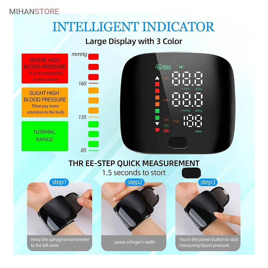 داشتن یک فشارسنج مچی دقیق و قابل اعتماد مانند Intelligent BP، نه تنها به شما کمک می‌کند فشار خون خود را به راحتی و به صورت روزانه کنترل کنید، بلکه آرامش خاطر و سلامت قلب شما و خانواده‌تان را تضمین می‌کند. این دستگاه با امکانات حرفه‌ای و طراحی کاربرپسند، بهترین گزینه برای کسانی است که به دنبال سلامت پایدار و کنترل دقیق فشار خون هستند. همین امروز با انتخاب فشارسنج مچی سخنگو Intelligent BP، گامی مؤثر در جهت زندگی سالم‌تر بردارید.